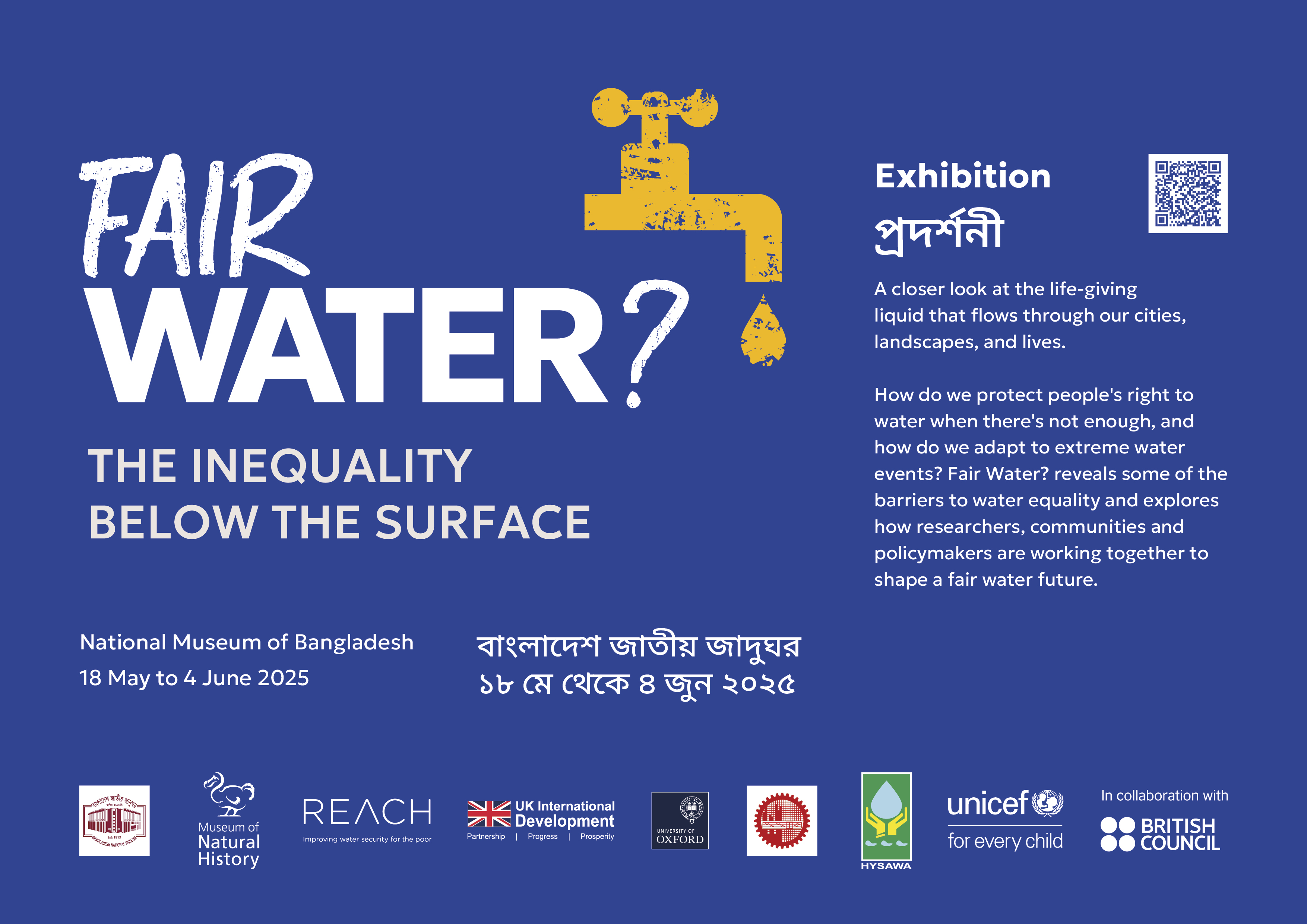 The Fair Water? exhibition is a collaboration of the REACH Water Security research programme and the Oxford University Museum of Natural History. It was launched in Oxford, UK, in 2023-24 and is currently touring galleries in Asia and Africa.